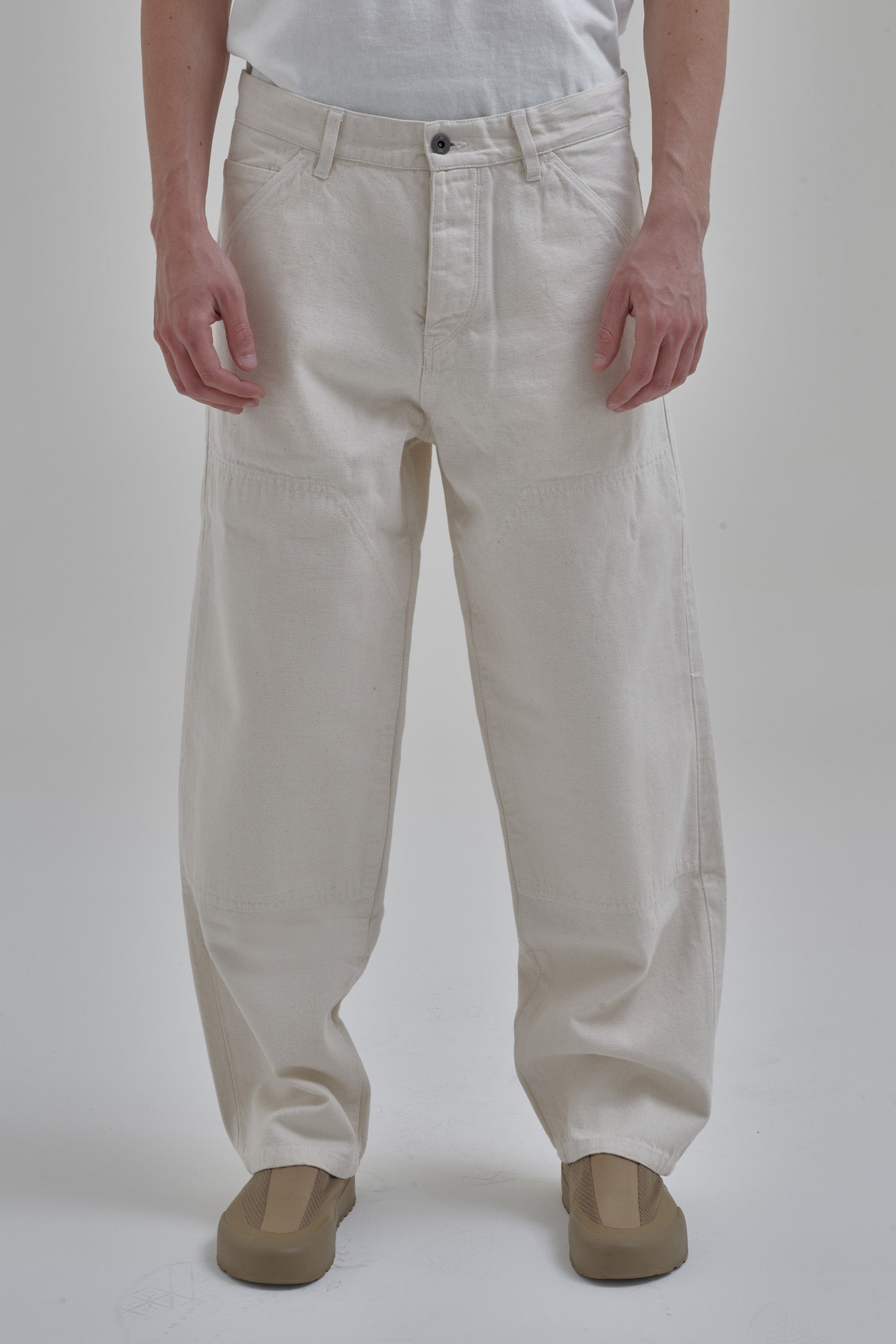 Il Blacksmith Pant è una rivisitazione in chiave moderna dell'iconico jeans rivettato brevettato nel 1873 da Jacob Davis e Levi Strauss, che ha dato vita alla leggenda dei blue jeans. Questo modello di ispirazione workwear è caratterizzato da due pannelli interni sulla parte delle ginocchia, che oltre a fornire protezione da eventi atmosferici danno struttura e rigidità rendendo il capo scultoreo.