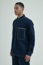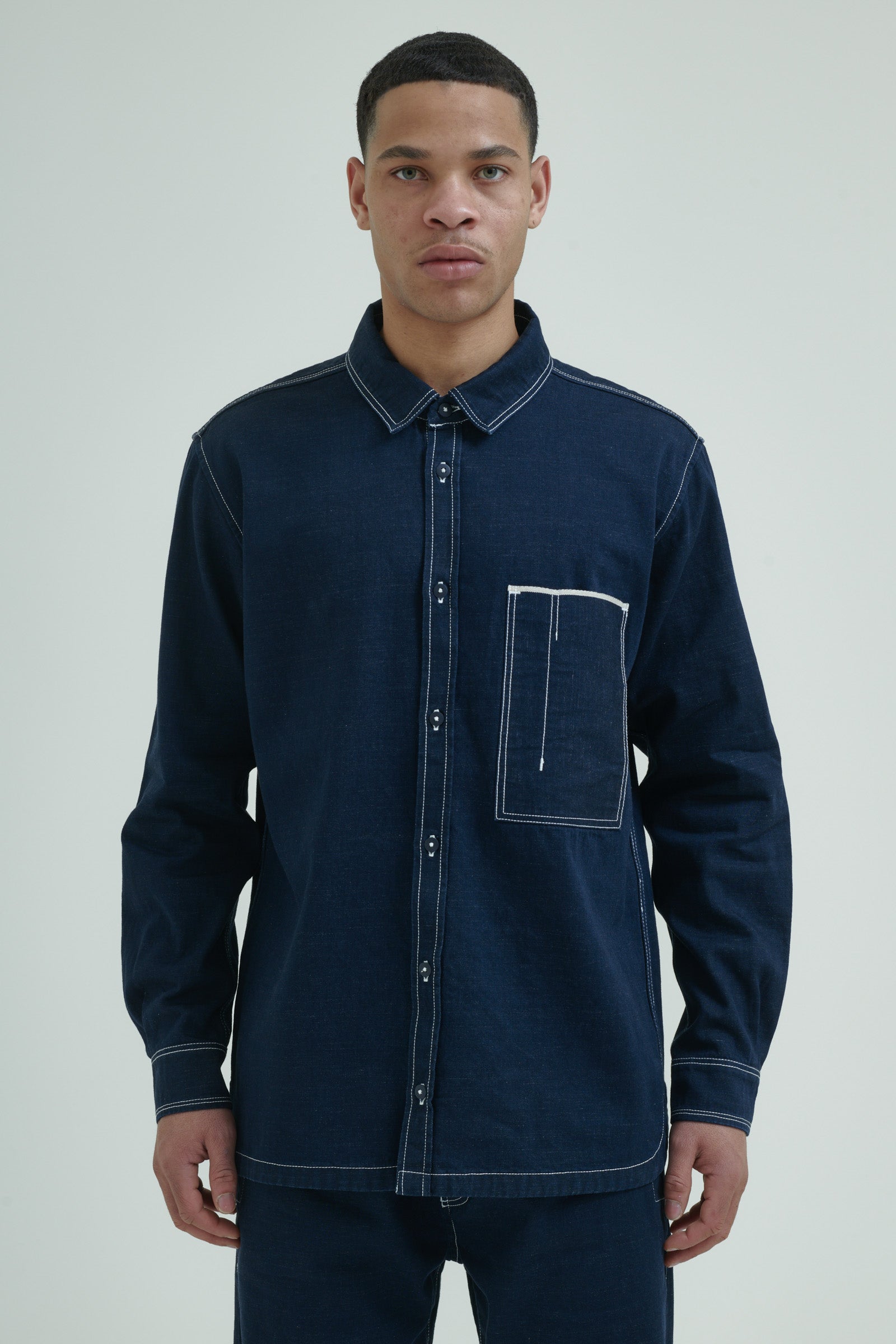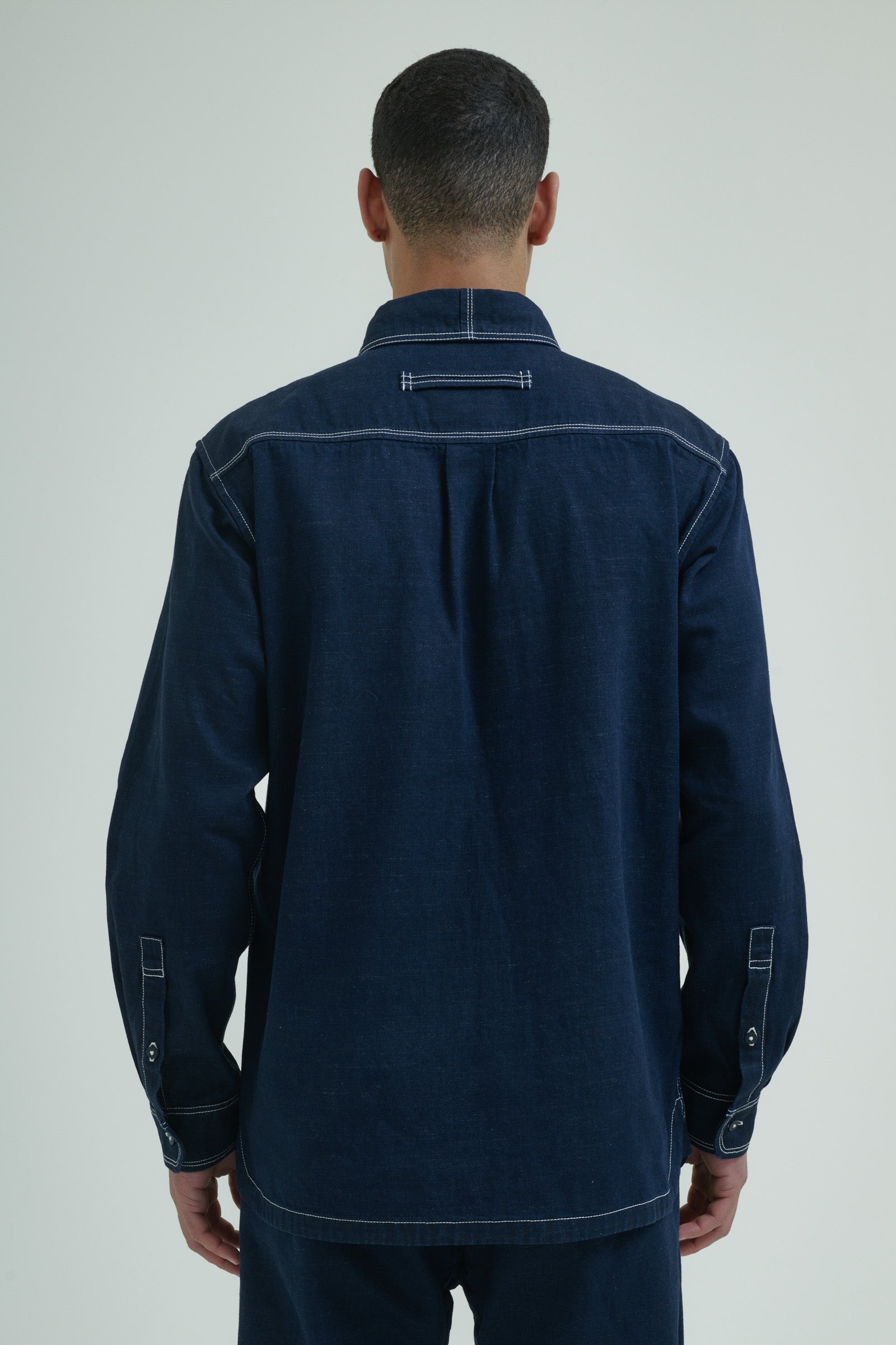 La nostra work shirt cimosata è un capo versatile e perfetto per essere indossata sotto a un cappotto durante i mesi più freddi o come capospalla di mezza stagione. Questa camicia è realizzata con un tessuto denim cimosato indaco scuro con la cimosa bianca a contrasto, come le cuciture di questo modello. Questi colori sono tipici delle prime divise da lavoro in denim.