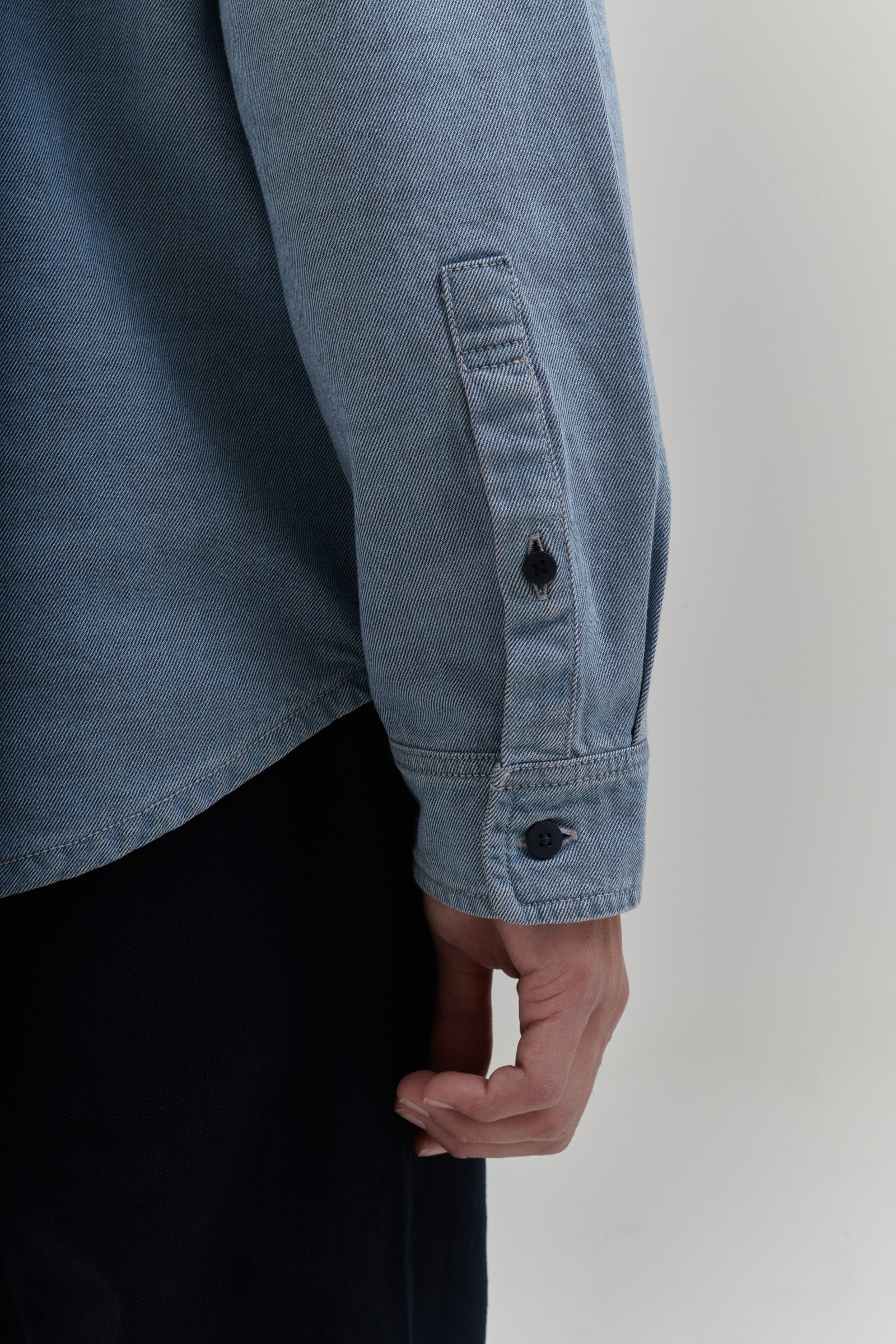 QUESTA CAMICIA È REALIZZATA CON UN TESSUTO DENIM 100% COTONE, PRODOTTO IN ITALIA DA CANDIANI. IL CAPO È STATO LAVATO PER OTTENERE UN MAGGIORE COMFORT E UNA MANO PIù MORBIDA.